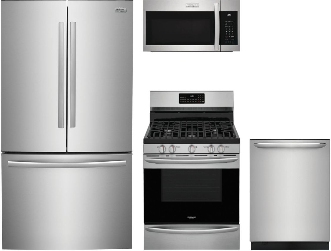 Frigidaire Gallery® 4 Piece Stainless Steel Kitchen Package with a side-by-side refrigerator, free standing gas range, built in dishwasher and over the range microwaveRead More